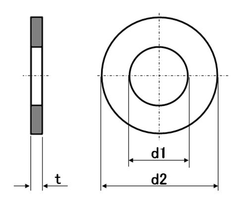 特長 真ん中に穴の開いた円盤状の部品で、使用の際にはボルトやナットと母材の間に挟み込みます。ISO規格(新JIS規格)に準じ、平座金ISOとも呼ばれます。多様な材質と表面処理から最適なものをお選びいただけます。